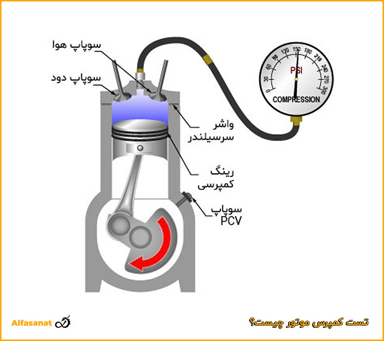 تست کمپرس فشار هوای داخل سیلندر را هنگام استارت زدن موتور اندازه گیری می کند. این تست نشان می دهد که آیا سیلندر توانایی فشرده کردن هوا را به درستی دارد یا نه. در واقع عدد کمپرس به ما کمک می کند تا بدانیم آیا رینگ های پیستون، سوپاپ ها یا واشر سرسیلندر مشکل دارند یا نه.