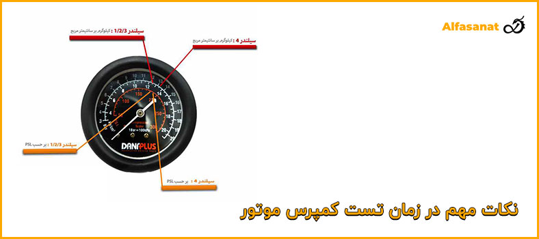 مثلاً در موتور پراید، کمپرس مناسب هر سیلندر باید بین ۱۵۰ تا ۱۸۰ PSI باشد. اگر این مقدار کمتر از حد نرمال باشد، احتمال وجود نشتی در رینگ پیستون، سوپاپها یا واشر سرسیلندر وجود دارد.